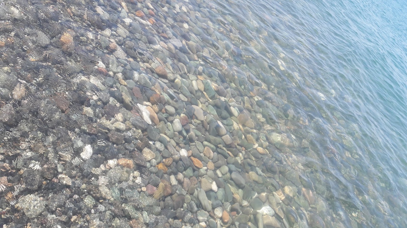 | Clear water Beach , all stones under water |